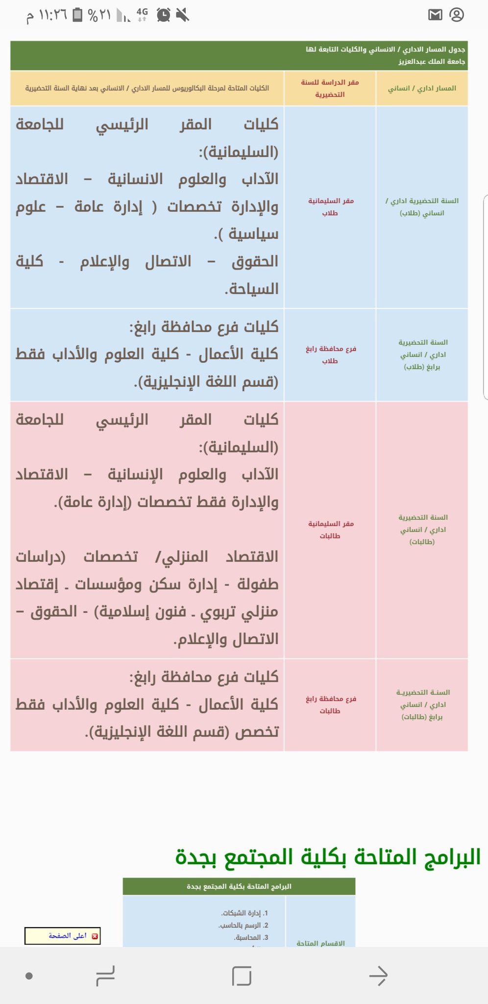 تخصصات العلوم الاساسية والصحية والهندسية والتقنية; تخصصات الادبي جامعة الملك عبدالعزيز. عمادة التعلم الالكتروني والتعليم عن بعد بجامعة الملك عبد العزيز حققت الريادة في برامج. كليات وتخصصات جامعة الملك عبد العزيز للبنات قسم ادبي : إدارة الأعمال، الاقتصاد ، إدارة الأعمال، المحاسبة ، العلوم السياسية ، إدارة الخدمات الصحية والمستشفيات ، نظم المعلومات الإدارية ، التمويل ، التسويق ، إدارة الموارد البشرية.